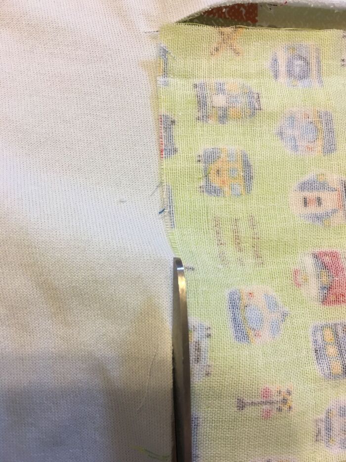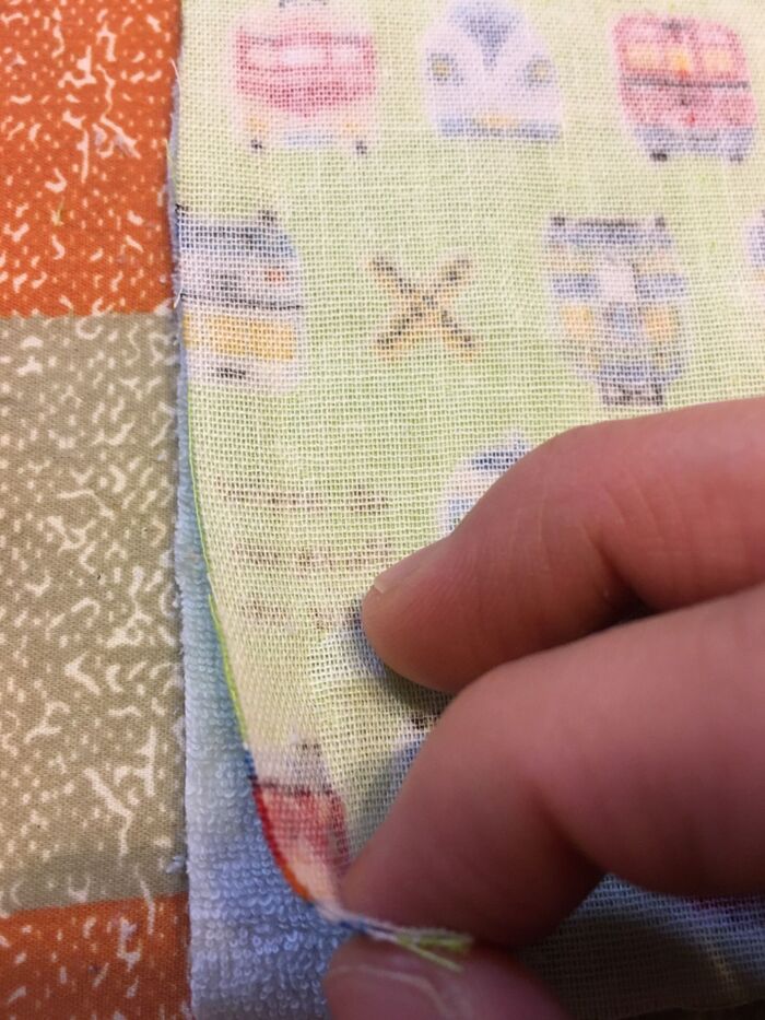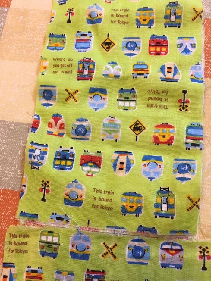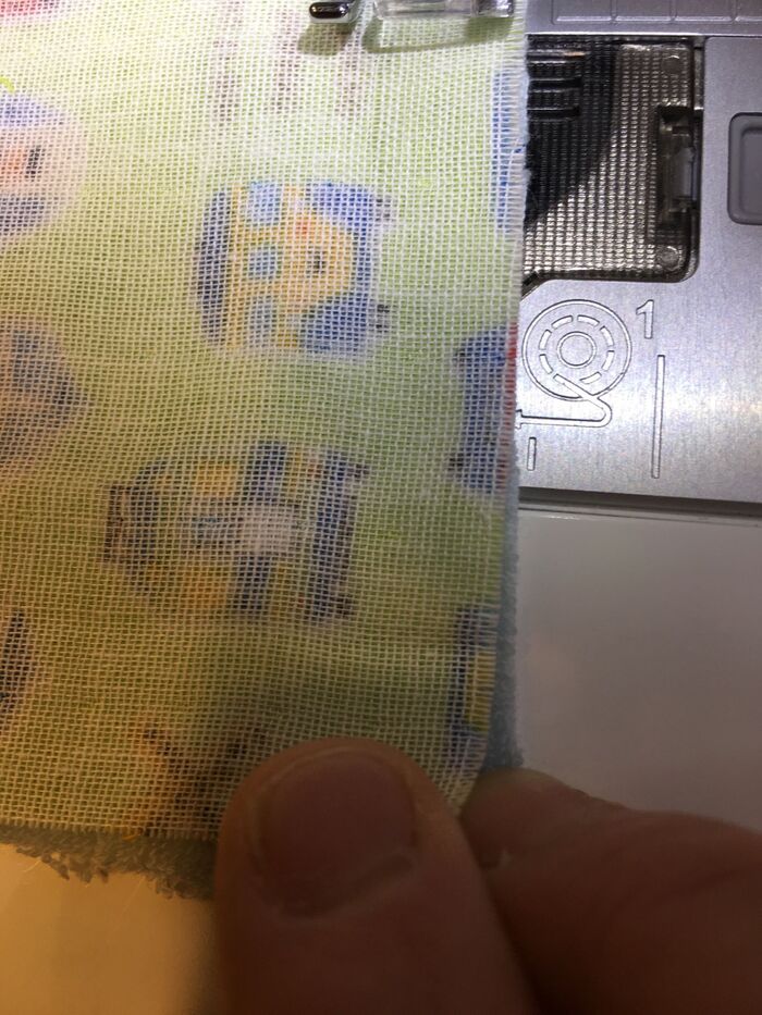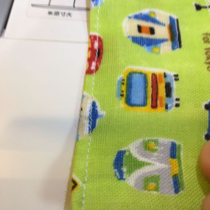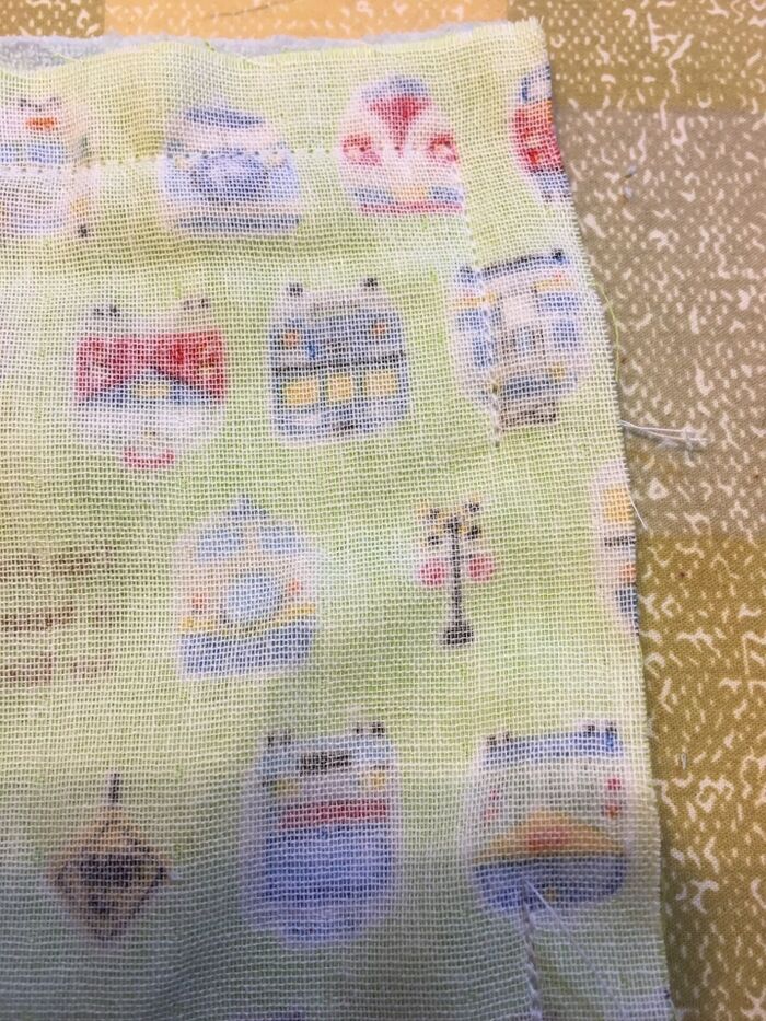◎パイル地が、よれて縫いにくいので、ガーゼと縫う際には、2枚を中表に合わせて、ガーゼを上にして、縫っていく。