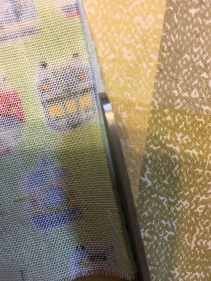 (めんどくさがりなので、パイル地の上に、切ったガーゼをのせ、裁断していく。)
