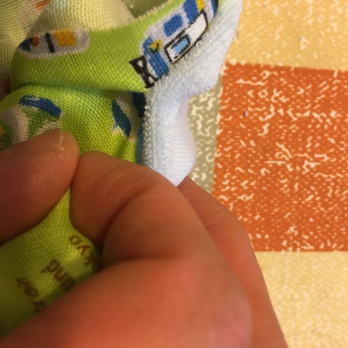 ⑪ガーゼとパイル地を中表にして、合わせる。