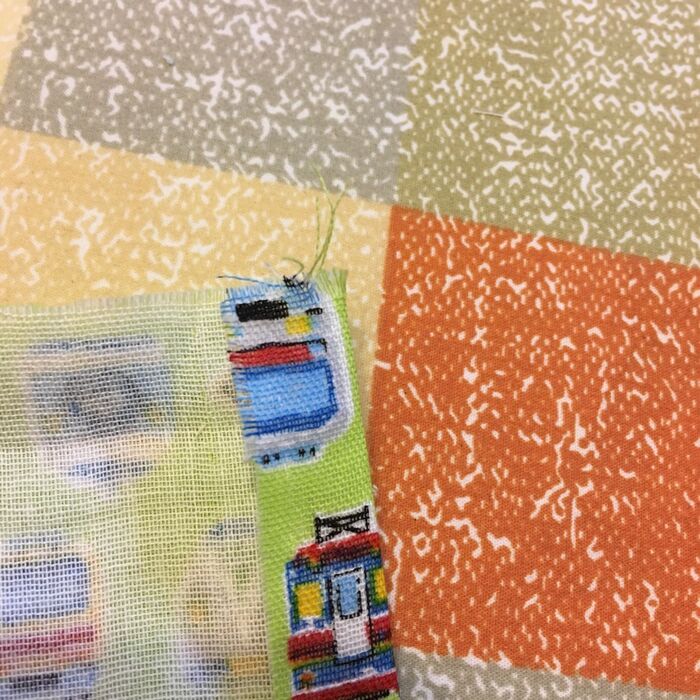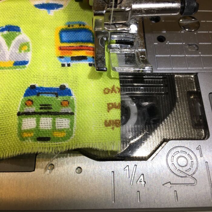 ※パイル地は、よれやすいので、ガーゼを上にして縫うと縫いやすいです!