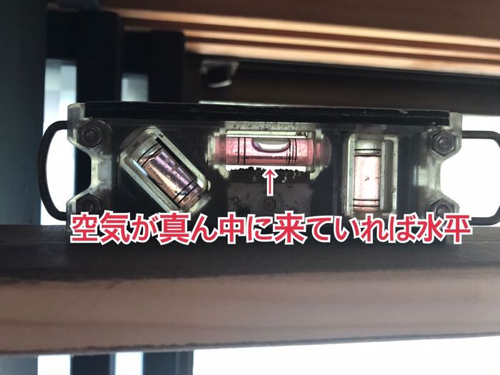 空気が真ん中に来るように、取り付けたい物を動かします。