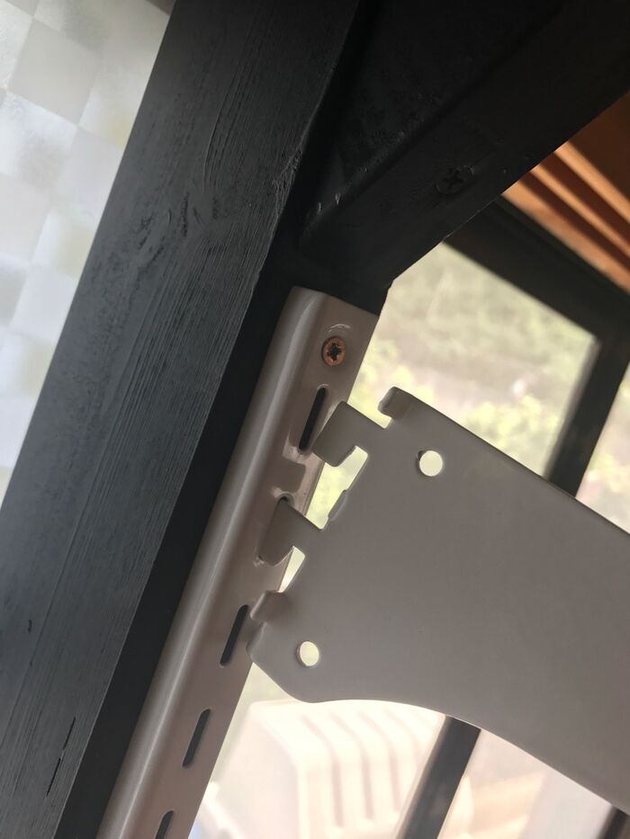 支柱を取り付けたら、棚受を棚にしたい高さの穴に差し込みます。