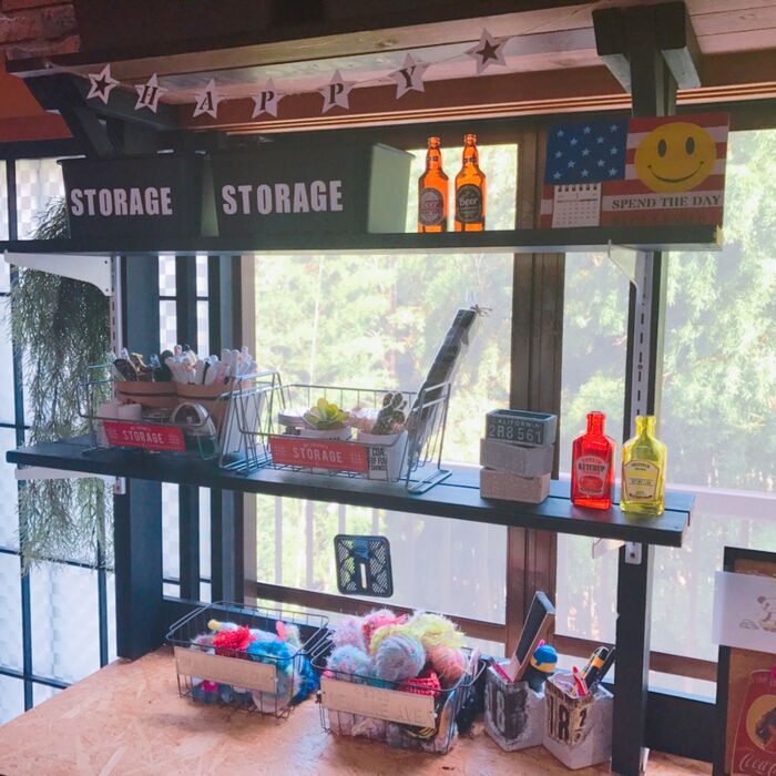 支柱や棚受を増やせば、かなりでかい棚も簡単に作れます♥️