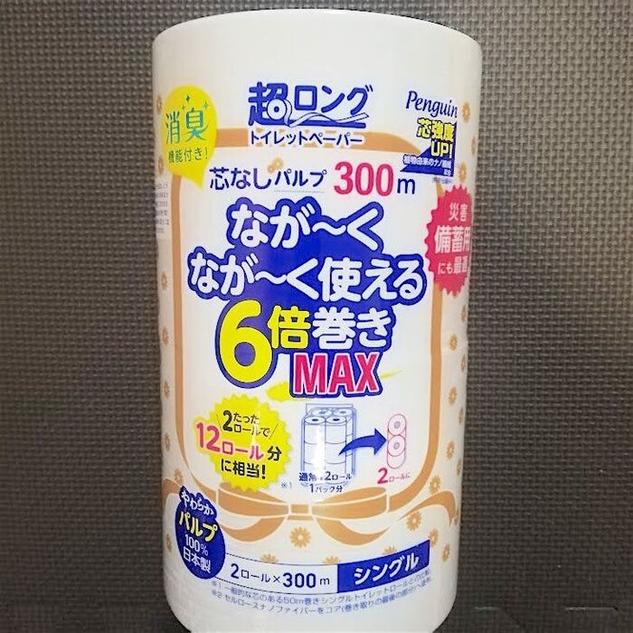ペンギンワンタッチと同じメーカー、丸富製紙の「超ロング長巻きロール 6倍巻き(300m)」