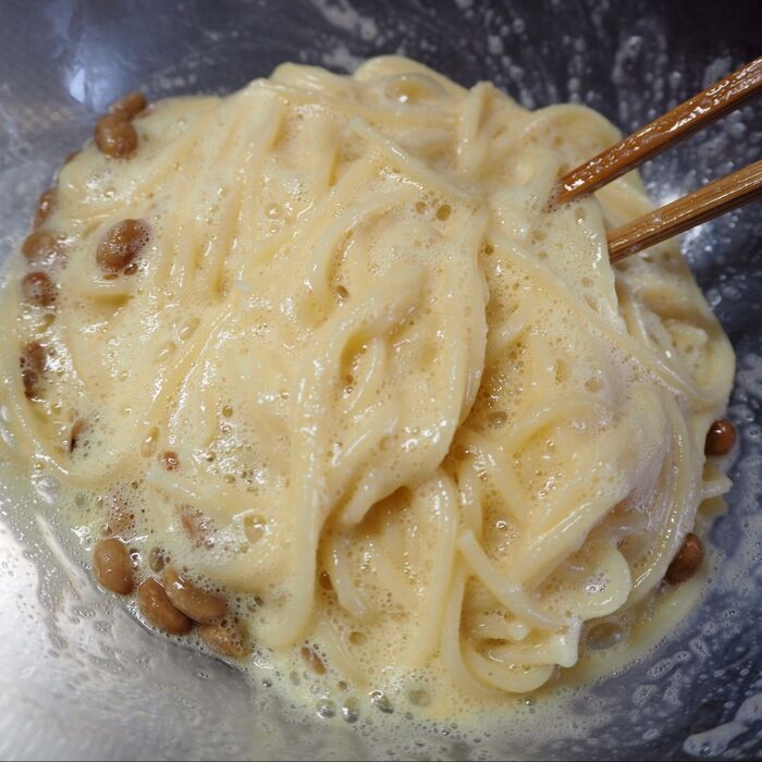 そんな妄想からつくってみたのが「納豆カルボナーラ」。