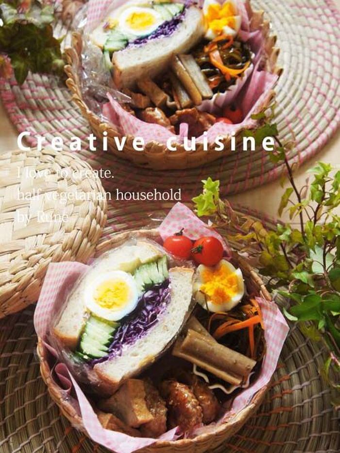 初心者はサランラップは十字の長めに置いて、クロスした中央にパンを置いてから具材をのせる作業行うと、仕上がりが簡単に綺麗に出来ます。