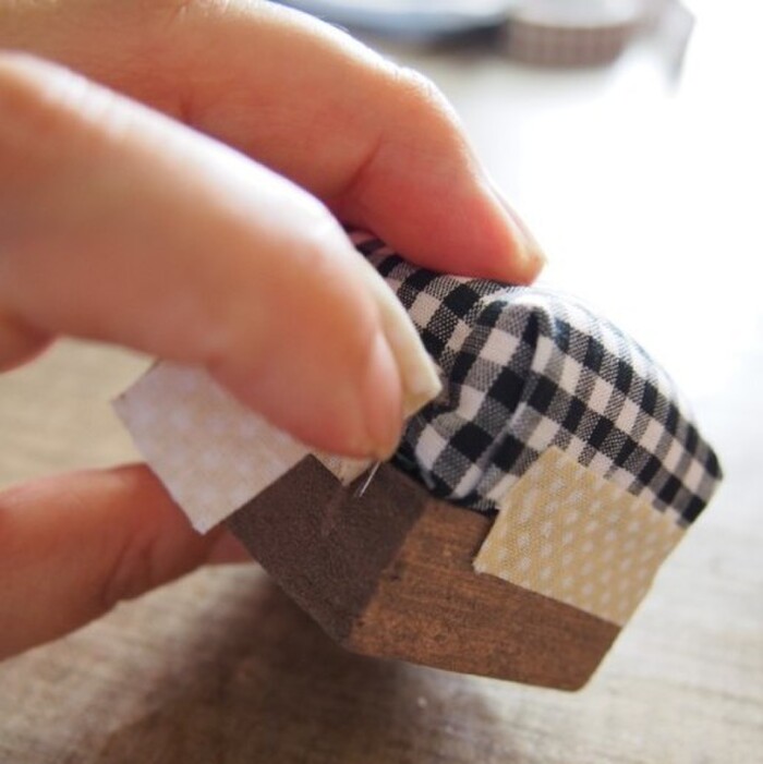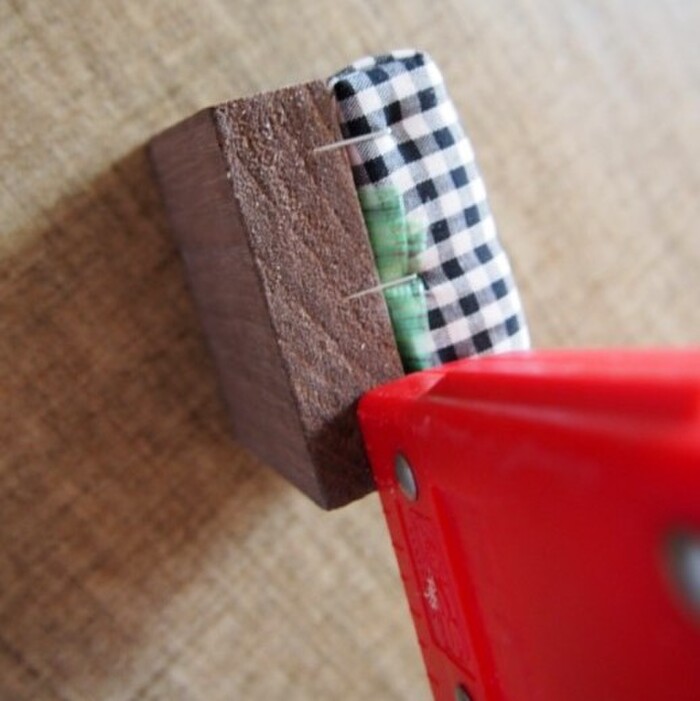 継ぎ目とタッカーの針を隠すようにファブリックテープを
