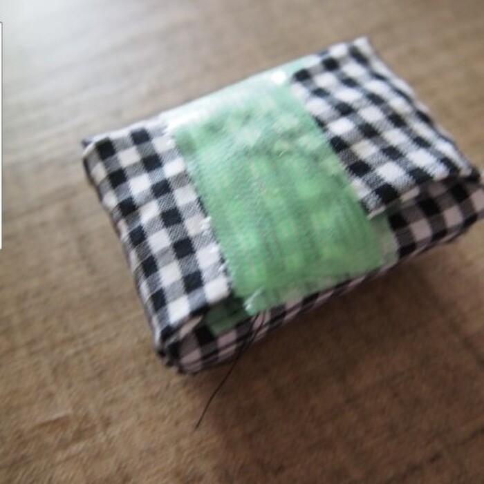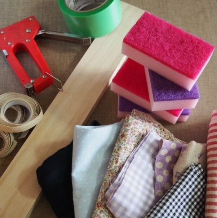 スポンジを布でギュッと強めに包んで養生テープを貼る