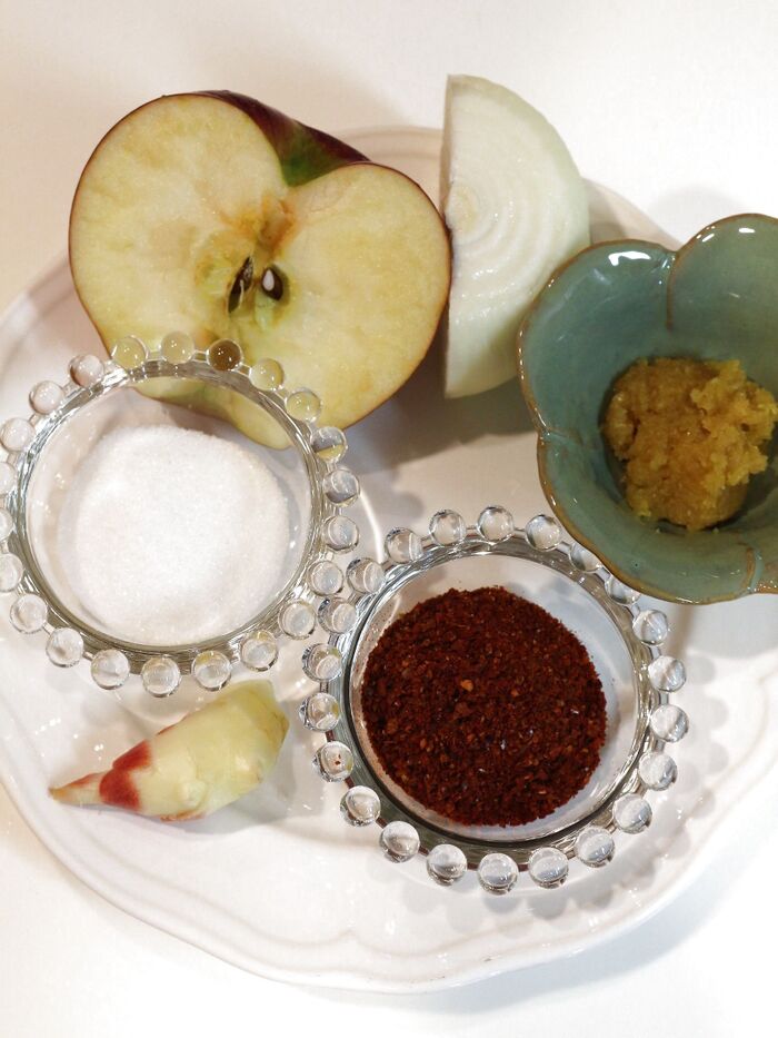 Ⓐおろし玉ねぎ1/2個分、おろしりんご1/2個分、おろしにんにく大さじ1、おろし生姜小さじ2、梅エキス大さじ3(or砂糖大さじ2)、塩大さじ1、カナリエキス大さじ2(orナンプラー大さじ1)、水2cup。