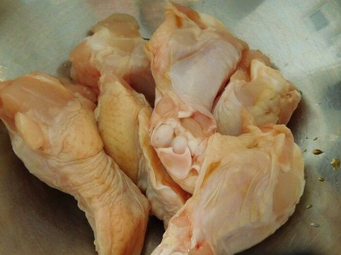鶏肉に醤油と酒で下味をつけ10分位置く