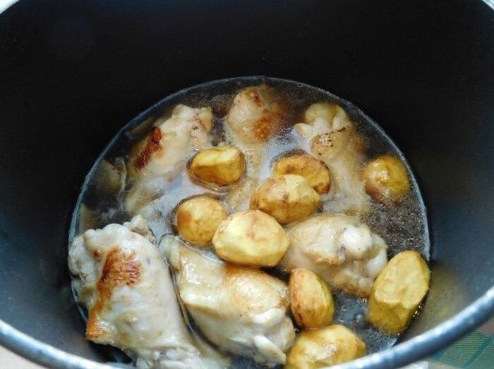 水とaの調味料を入れ栗を加えアクを取りながら煮込む