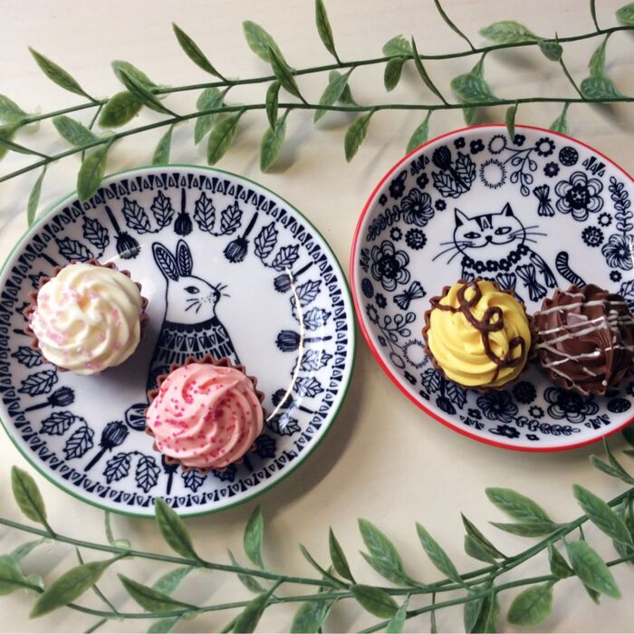 ひと回り大きいピンクの皿に重ねてラブリーな雰囲気に♡