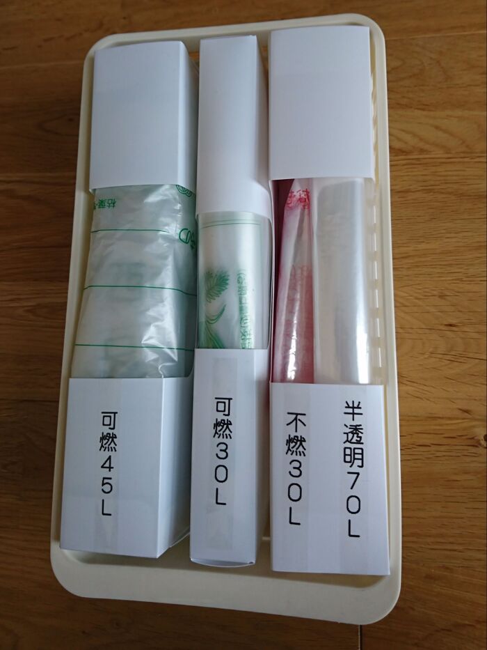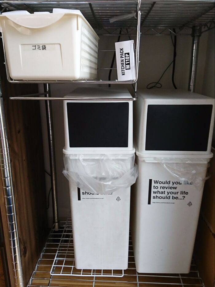 使いやすいようにゴミ箱のすぐ側に置いてます。