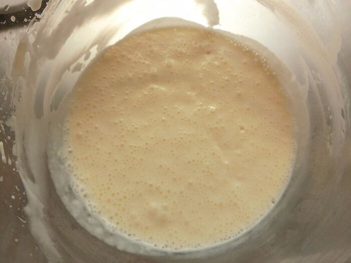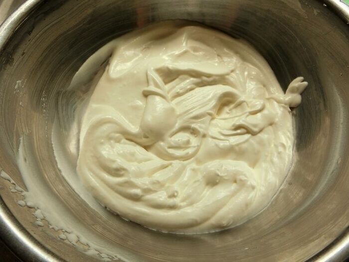 生クリームと砂糖を混ぜ合わせ、8分立てにします。