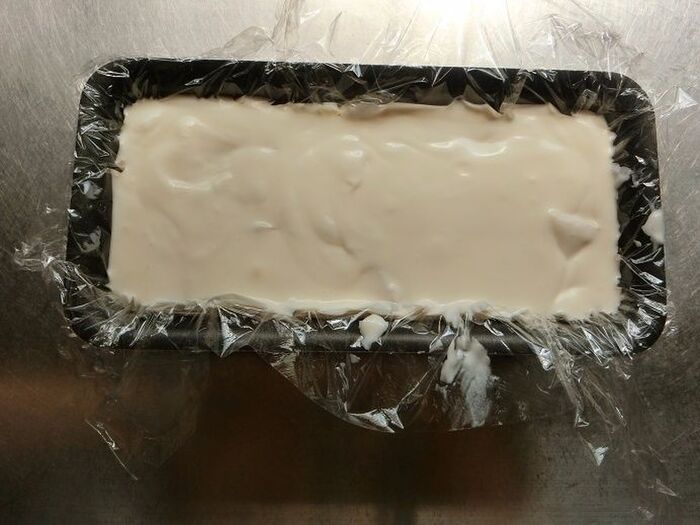 型にラップを敷くと、取り出すときに簡単にできていいです。