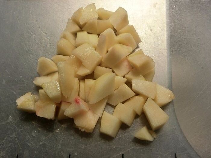 生クリームも混ぜ合わせたら、1の桃の飾り用を残して混ぜ合わせます。