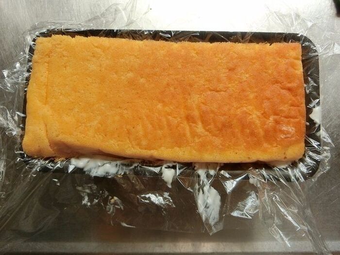 型はパウンド型を使いました。スポンジは型の大きさに合わせて下さい。