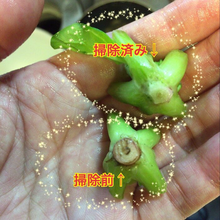 切り口のところは土がついているので手で広げながら流水でしっかり流します。