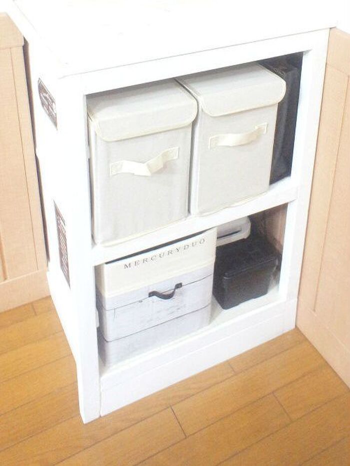 収納ボックスは、不織布で出来てるから使わないときは小さく折り畳めるのも便利。
