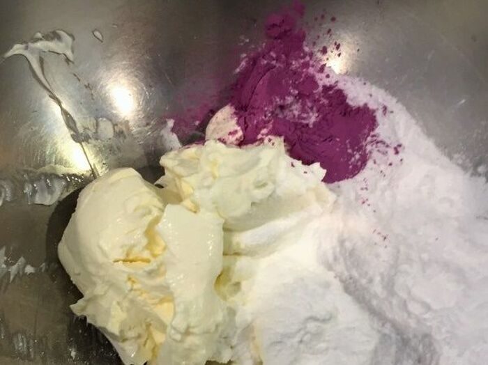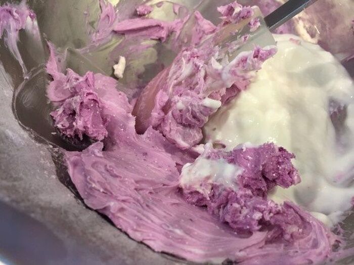 マスカルポーネに粉砂糖 紫芋パウダーを加えよくかき混ぜる