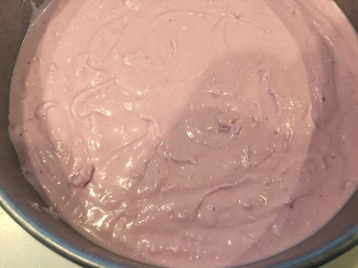 溶かしたゼラチンを生地に加えよくかき混ぜ裏ごししてから クッキーを敷き詰めた型に入れ冷蔵庫で固める
