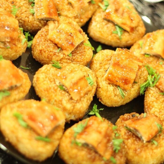 おにぎり 蒲焼 シソ を乗せていくだけで 出来上がりです。
