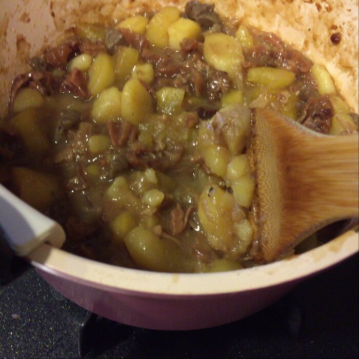 水気を飛ばしつつ木べらでサクサク混ぜます。