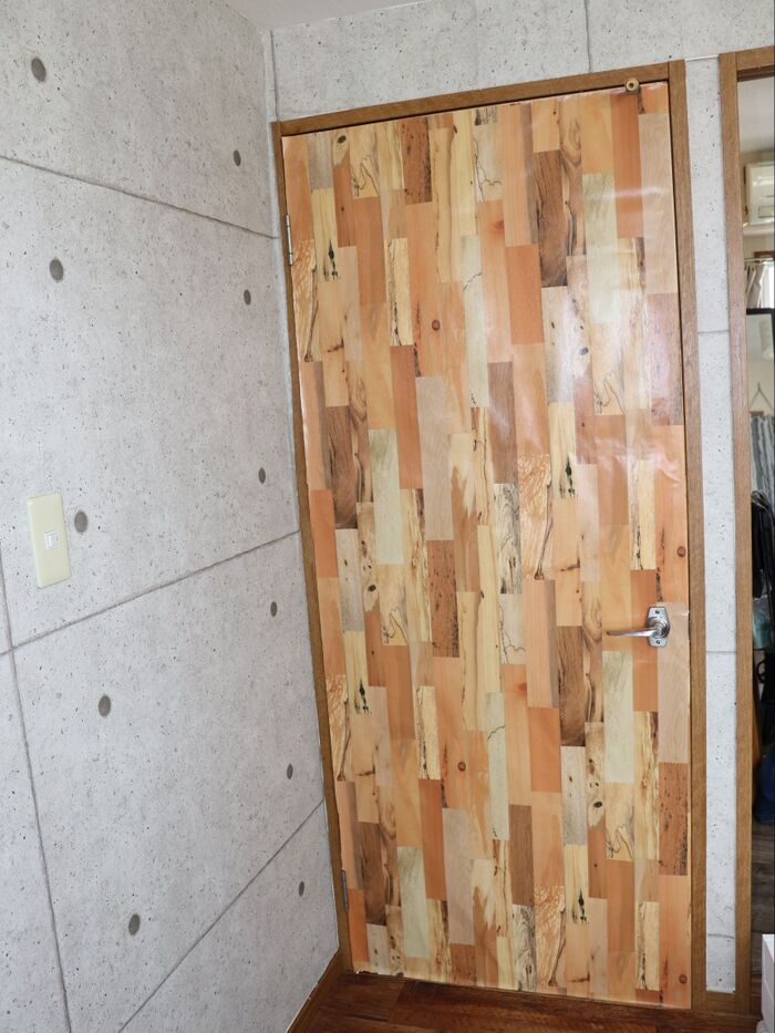 ドアは木目調にしました。ドアは糊が使えないのでマスキングテープ&両面テープ使用です。