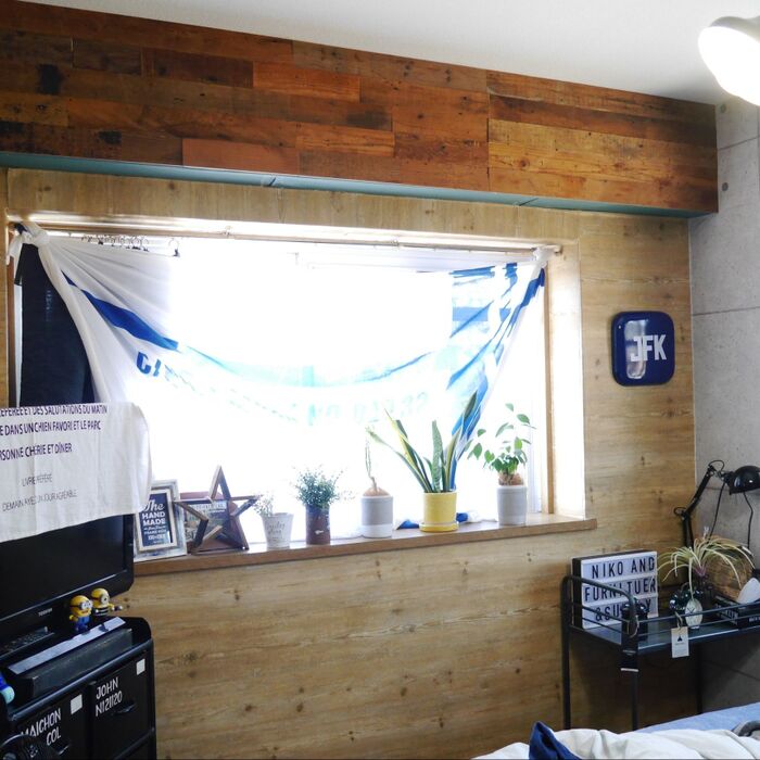 出窓側だけ目立たせたので、他の壁はすべてコンクリート風にしました。