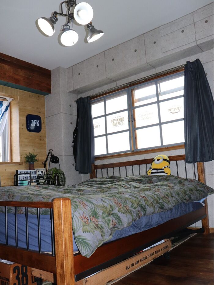 自分だけの寝室ではないのでかっこいい雰囲気を目指しました。