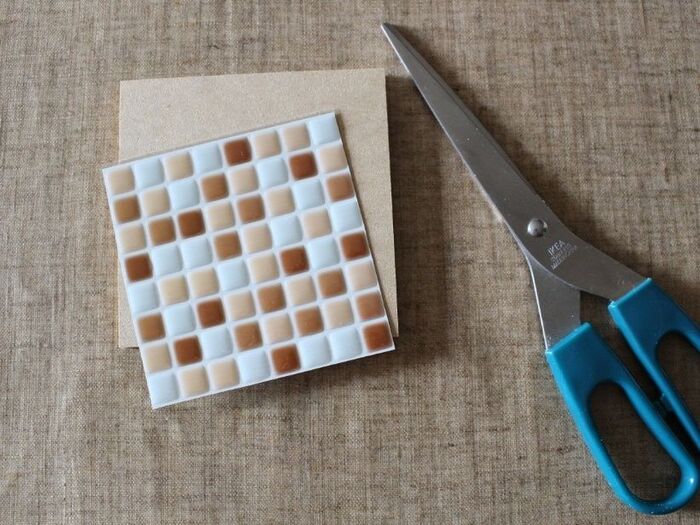 タイルシールをMDF材より一回り小さめにカットします。
