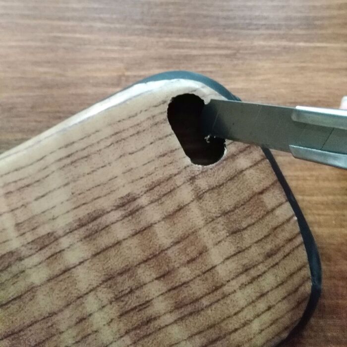 カメラレンズ穴等の部分は、穴の縁にカッターの刃を沿わせるような感じでカットするとやりやすいです。