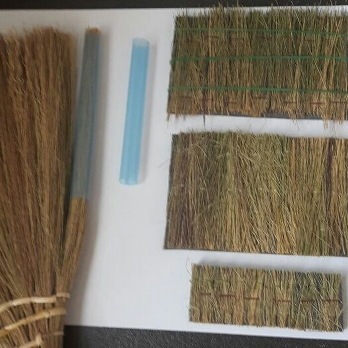 ③ 屋根板の表面に隙間なくホウキ草を平らに敷き詰める。