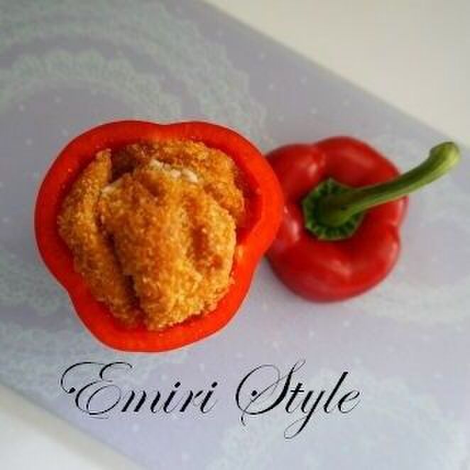 ①パプリカの上部をカットして、中身の種とワタをくりぬきます(*^▽^*)
