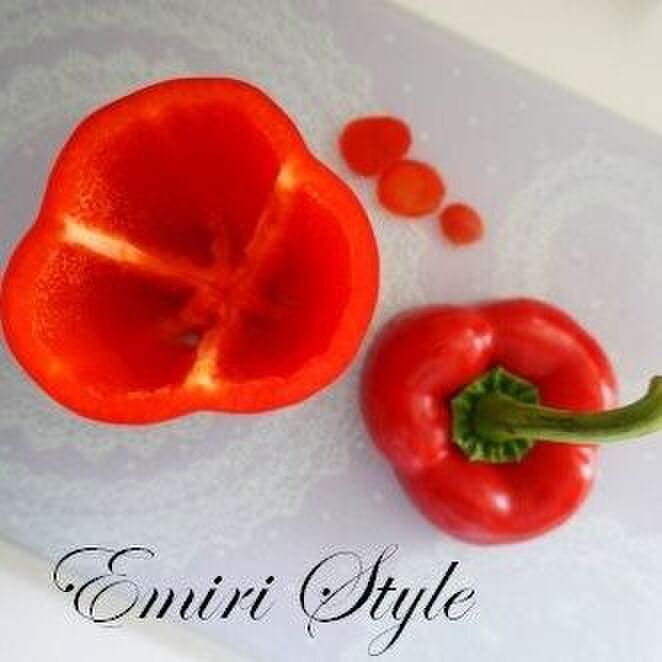 パプリカの底をカットした残りは、ソースの上にトッピングとして使い、余すことなく!無駄なく!お洒落に!使い切ってしまいましょう(^_-)-☆