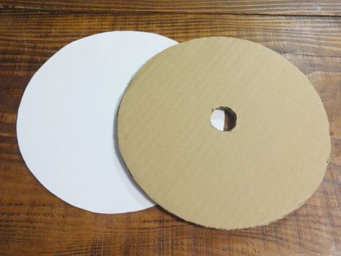 段ボールは、ケーキスタンドの天板のサイズに2枚切り出します
