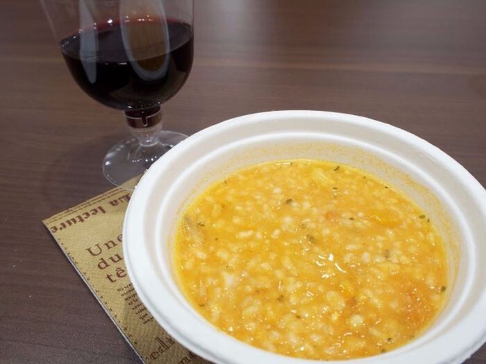 ラインアップは、「トマトとチーズのリゾット」「3種のチーズリゾット」「ほうれん草とチーズのリゾット」「カルボナーラ風リゾット」の4つ!今回は、「トマトとチーズのリゾット」をいただきました。