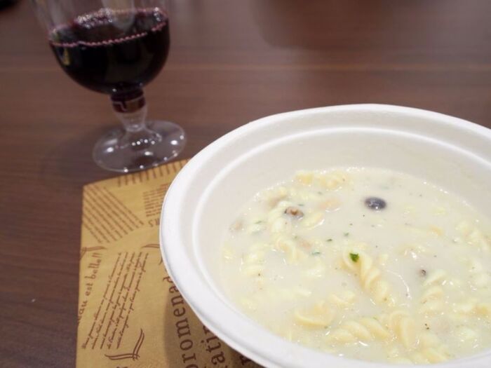 ラインアップは、「3種のチーズのクリームパスタ」「焼きなすとトマトのクリームパスタ」「枝豆のサーモンのクリームパスタ」の3つ!今回は、「3種のチーズのクリームパスタ」をいただきました。