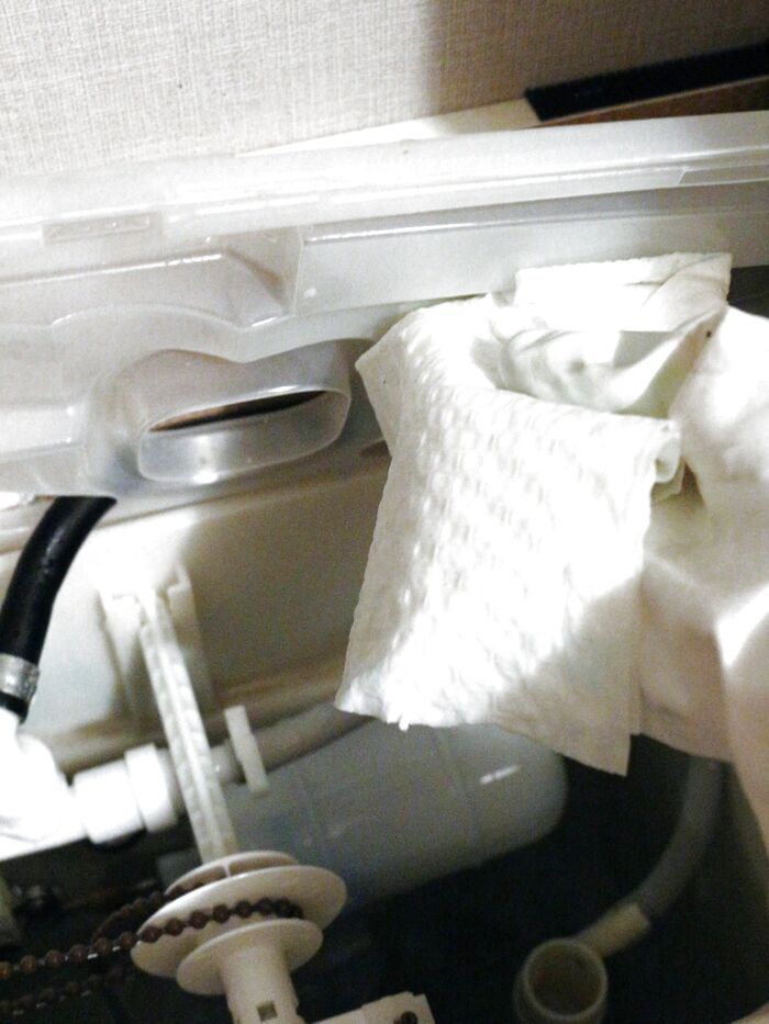 蓋やタンクの周りはおそうじシートで拭き取る。