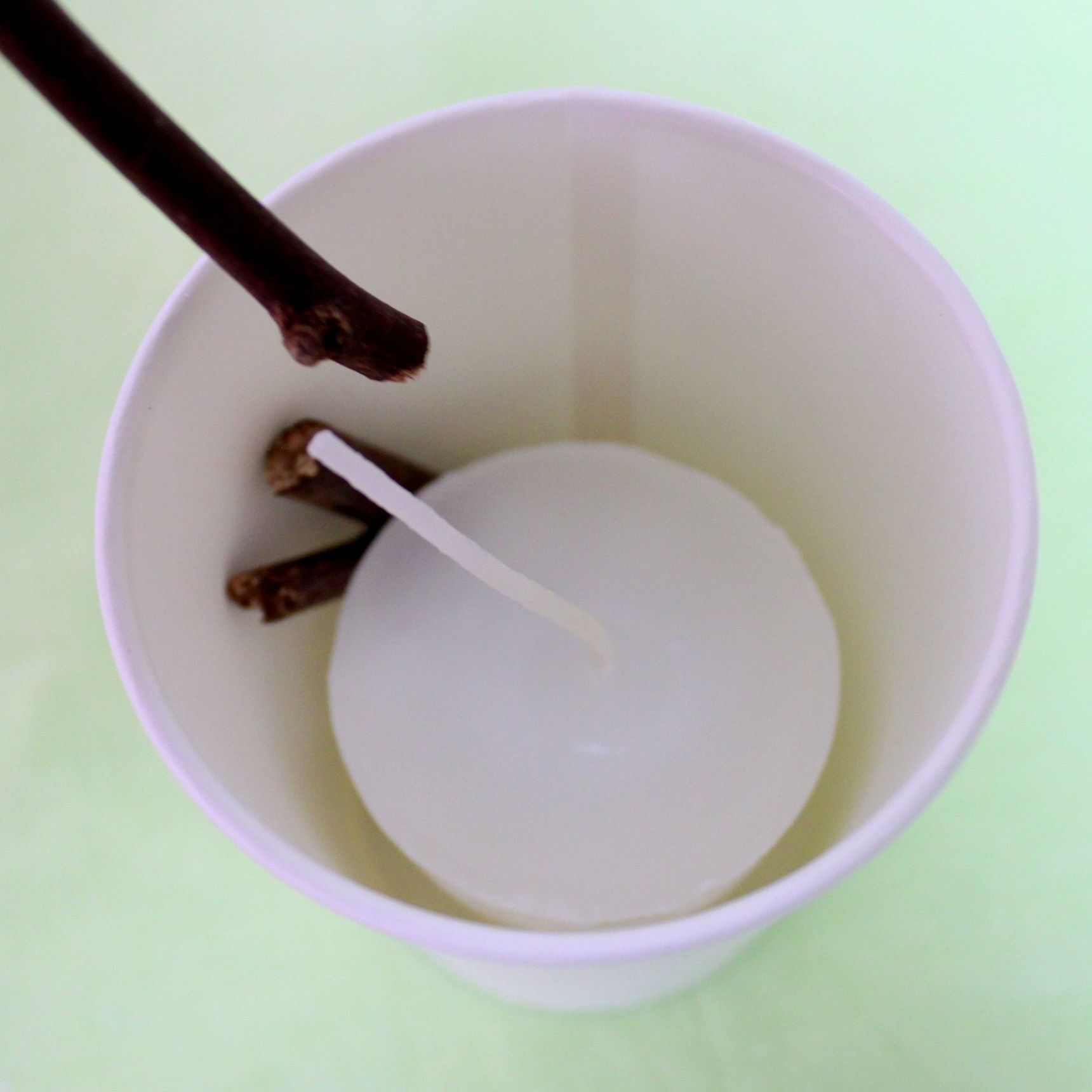 紙コップ(90ml)に芯を固定します。