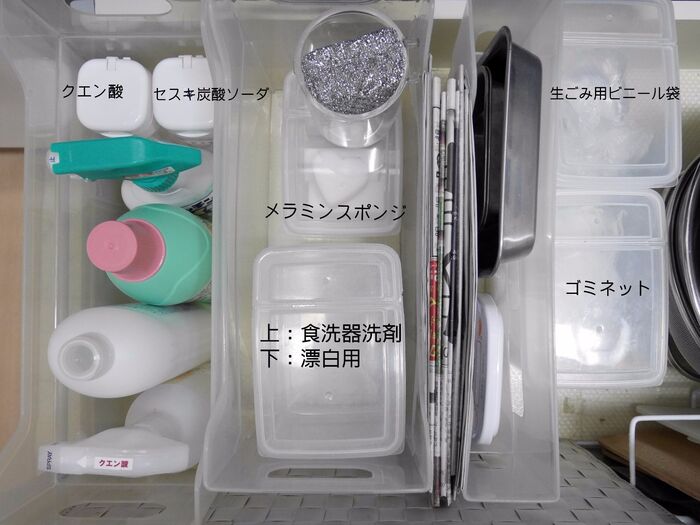 ここはシンクで使うおそうじグッズをまとめておさめているところ。