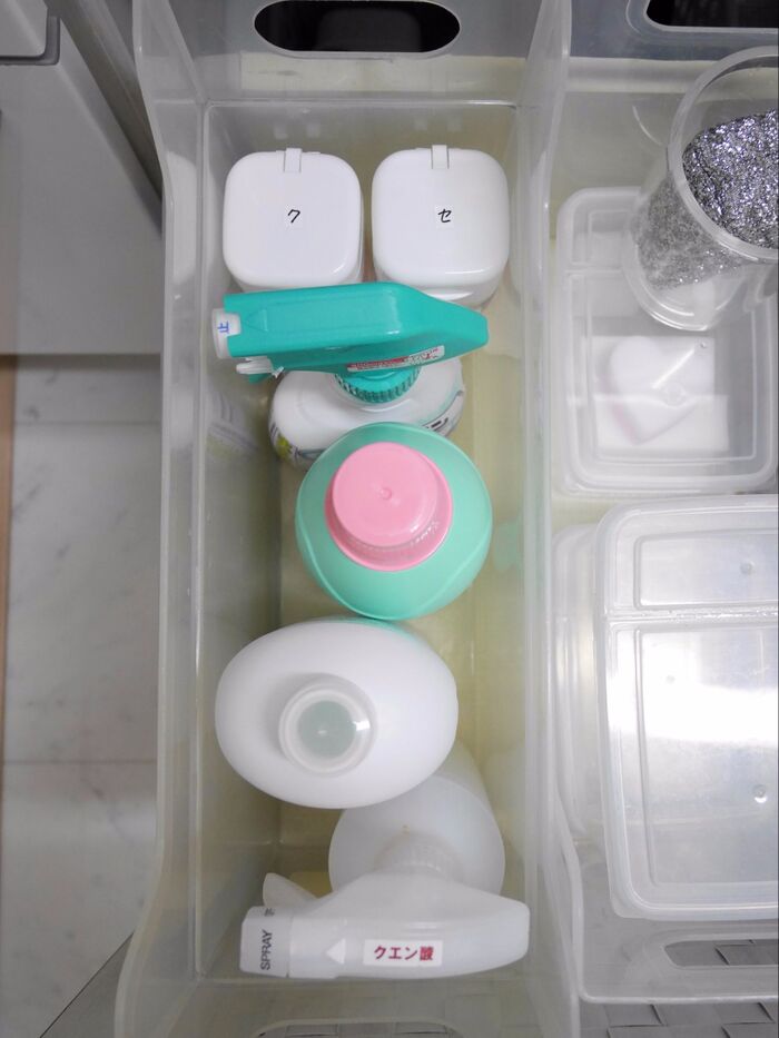 洗剤はこんな感じでシンク下の引き出しにコンパクトに