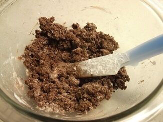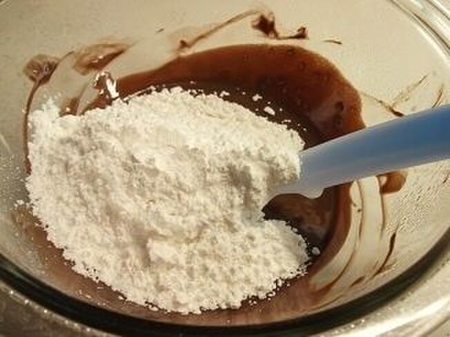 ボウルに適当に割ったチョコレートと米油を入れ