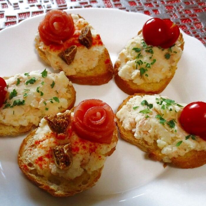 ④③の上(2個)にカイエンペパー(パウダー)を1枚に、1~2振りを振りかけ、1個につき、生ハム薔薇1個といちじく2個をのせる⇒生ハムの薔薇は、2枚の生ハムで薔薇の花を1個作りました