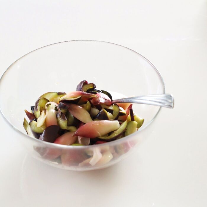15分程度で美味しく頂けますが、2~3時間くらい置くと茗荷のほんのりピンクが茄子に移りいい雰囲気になります^^