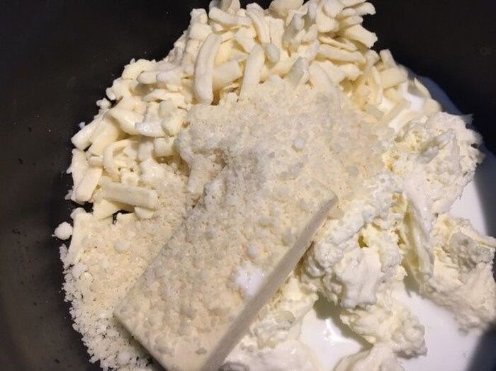 鍋に牛乳とaのチーズ(パルミジャーノは30g)を加えかき混ぜながら手早く溶かす