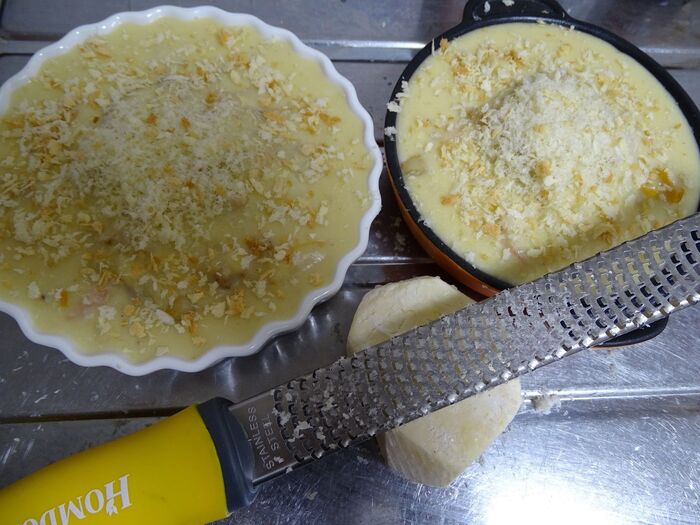 パルメザン、パン粉を振り・・・・・