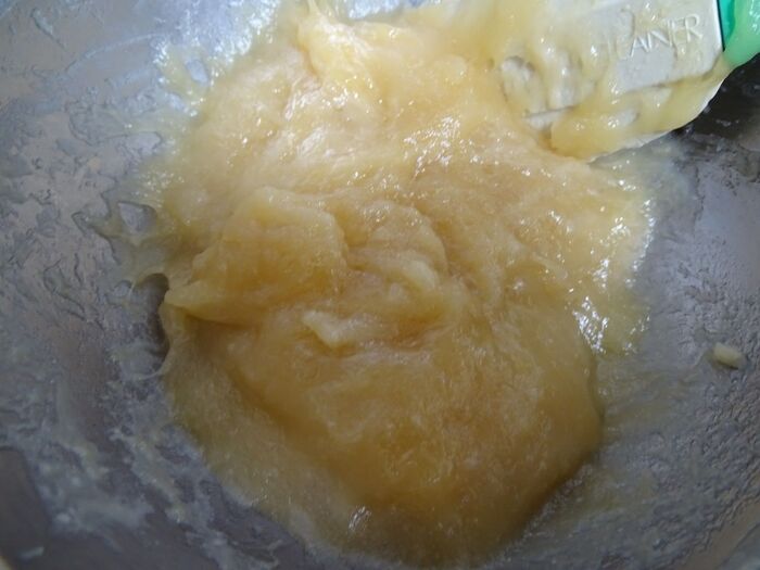 片栗粉を打ったバットに入れて、オーブンシートで押さえ、平らにして冷ましておく。