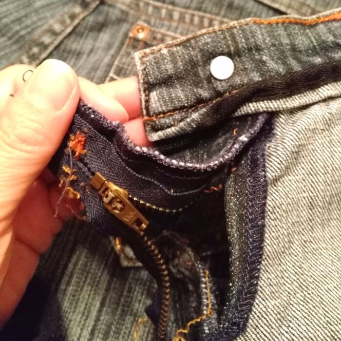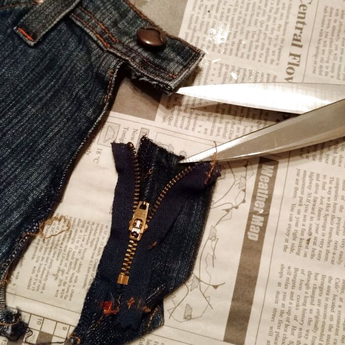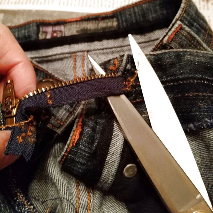 ファスナーの先端はジーンズのウエスト部分に縫い込まれているので、ここは簡単にカットしました。