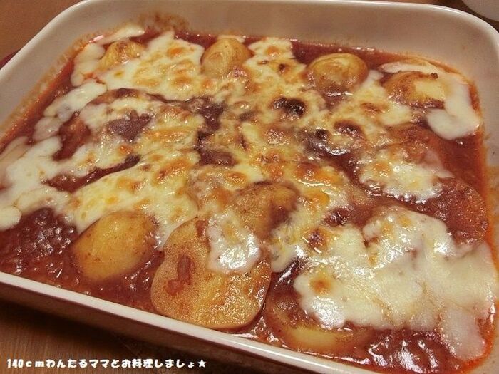 2に3をかけ、ピザ用チーズを散らします。トースター焼き、チーズが溶けて焼き色が付いたら完成♪